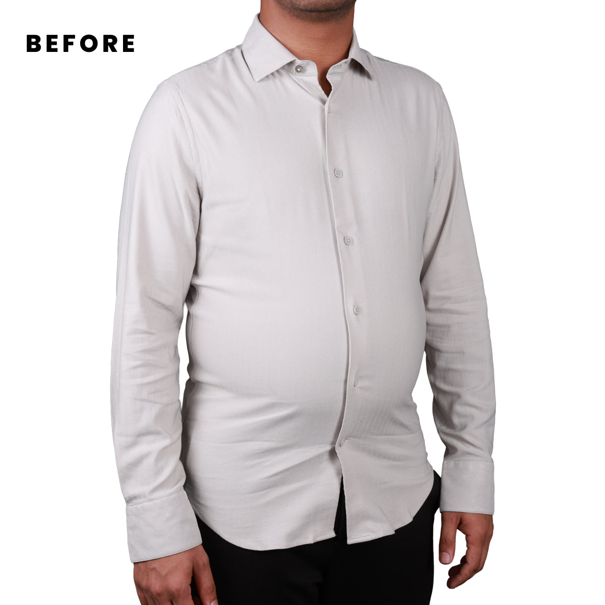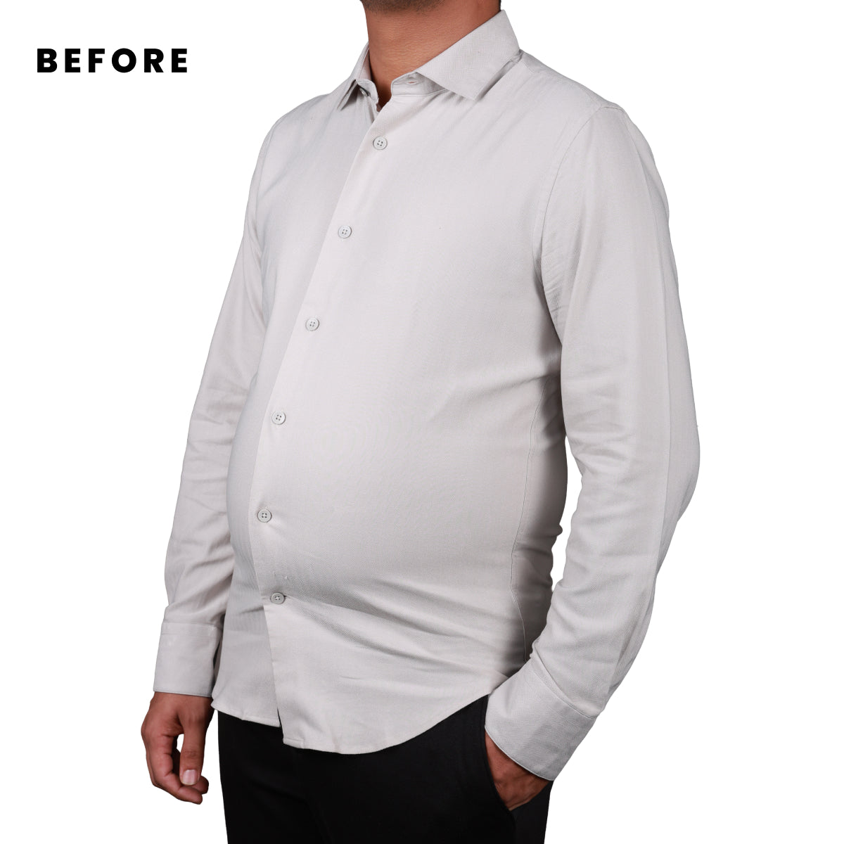 Our vest is made from highly expandable, premium compression fabric that stretches to fit your body comfortably while providing the optimal shaping effect. The tight fit is essential for the vest to work effectively and give you the body-contouring results you're looking for. Please trust your size selection and do not size up. The compression is what creates the smooth, sculpted look under your clothes.